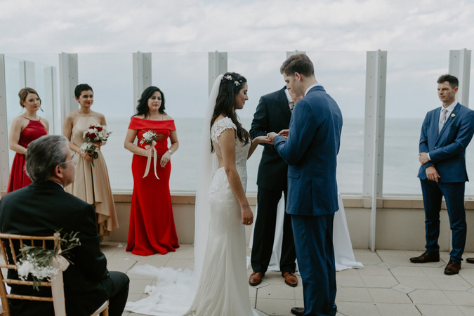 After the ceremony we hurried down to the boardwalk for some portraits during cocktail hour. I'm telling you - the weather could not have been any better for their day. Perfection.